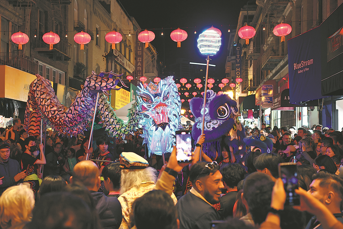 A dragon dance and lion dance performance gets underway on Saturday night at San Francisco's China Town, as part of the city's efforts to attract tourists and participants to the upcoming Asia-Pacific Economic Cooperation meeting. [FENG YONGBIN/CHINA DAILY]