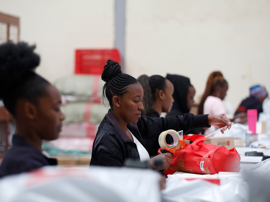 Staff members of Kilimall pack commodities at a warehouse in Mlolongo, Kenya, Nov. 10, 2023.(Xinhua/Li Yahui)