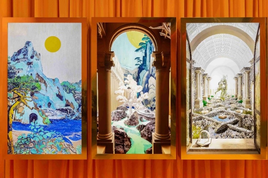 At Bulgari's exhibition booth, outstanding works of art by Chinese artist Qiu Anxiong and Italian artist Giuseppe Lo Schiavo were displayed as a vivid interpretation of harmonious cultural integration between China and Italy.