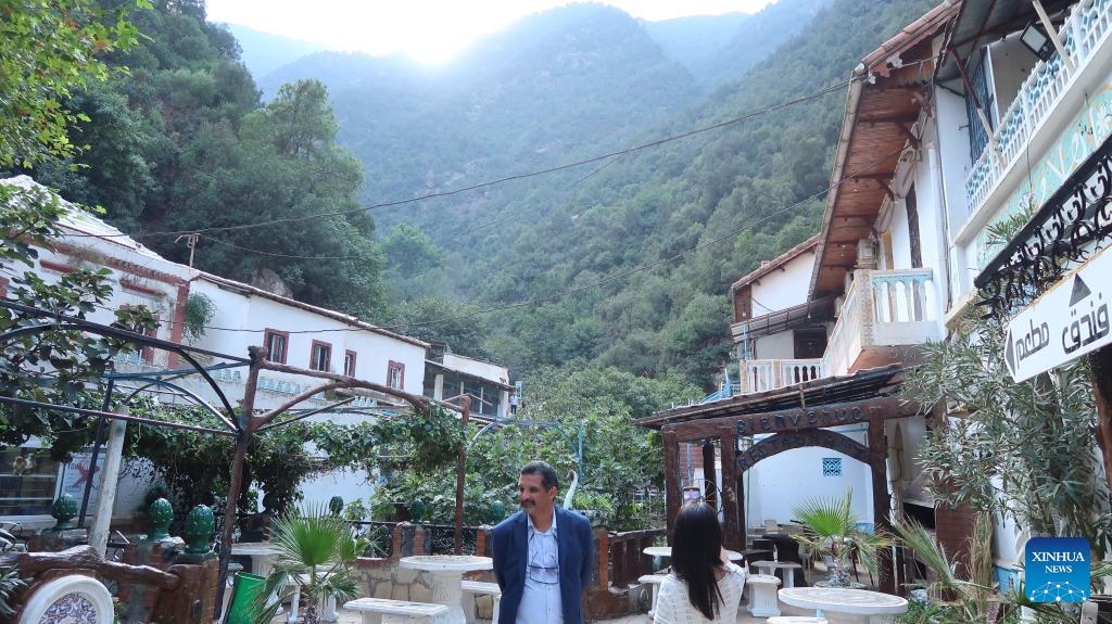 ALGIERS, Nov. 13 (Xinhua) -- Nestled 60 km south of Algeria's capital Algiers, the renowned Monkey Creek restaurant in Chiffa Gorge boasts a long history of a century and more. A photo wall inside showcases famous personalities, including Napoleon III, Prince Philip, and former Algerian leaders who visited the site. However, the centerpiece is a Chinese sign that reads "Huan Ying Guang Lin" (welcome).