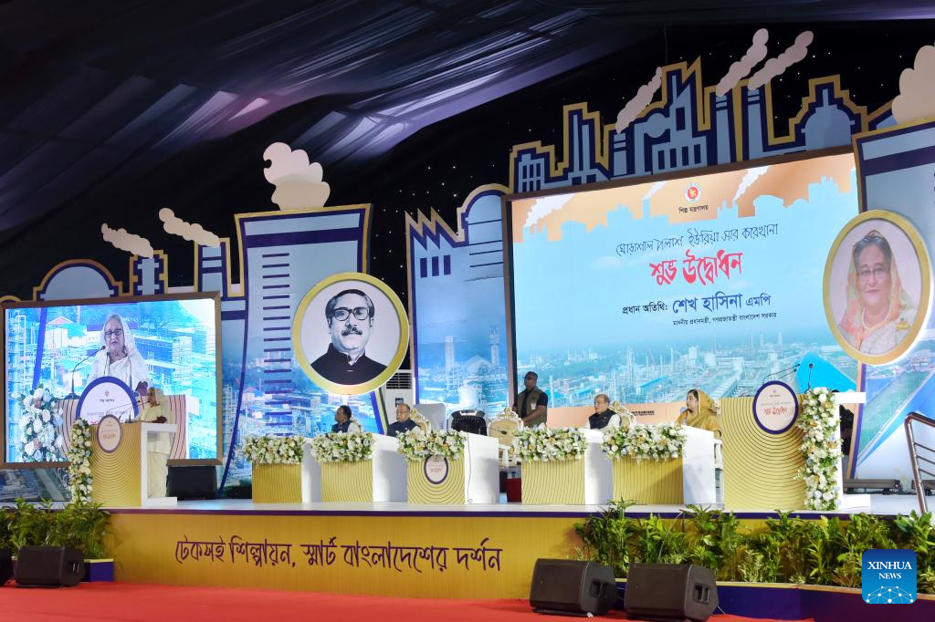 Speaking at the launching ceremony on Sunday, Hasina said it is Bangladesh's first fertilizer plant capable of capturing carbon dioxide, thus increasing the country's urea fertilizer production by 10 percent.