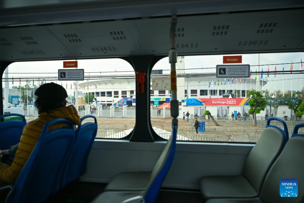 An electric bus for the Pan American Games 2023 runs on a road in Santiago, Chile, Oct. 31, 2023. (Xinhua/Xin Yuewei)