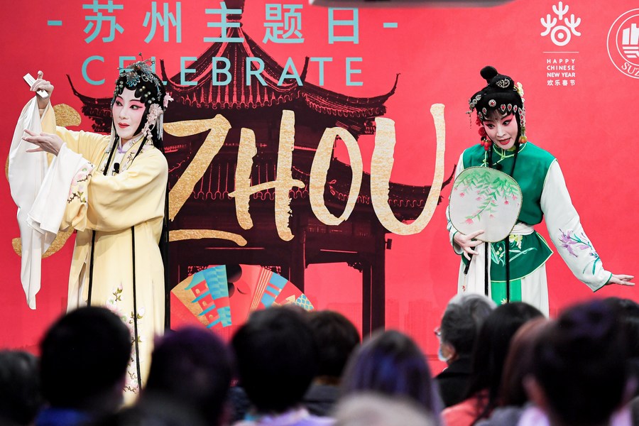 Kunqu Opera performers perform at China Institute in Manhattan, New York, the United States, Jan. 8, 2023. (Photo by Ziyu Julian Zhu/Xinhua)