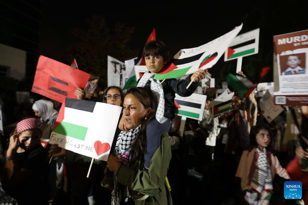 People take part in a rally to express their support for the Palestinians in Amman, Jordan, on Nov.14, 2023. (Photo by Mohammad Abu Ghosh/Xinhua)