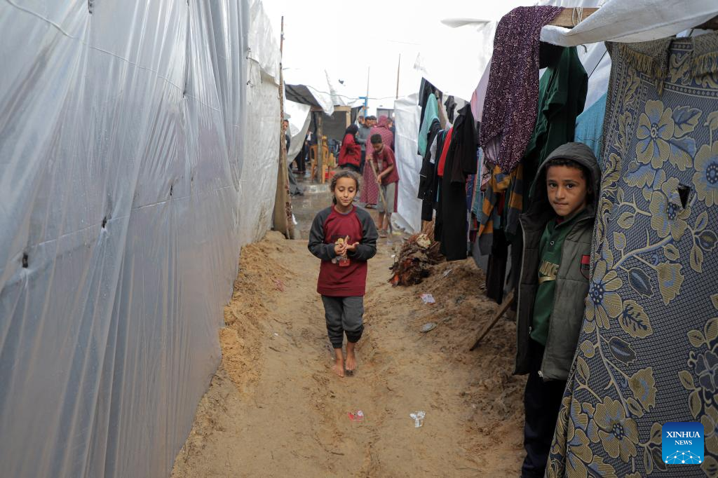 Displaced children are seen at a temporary shelter in the southern Gaza Strip city of Khan Younis, on Nov. 15, 2023. According to the UN Relief and Works Agency for Palestine Refugees in the Near East (UNRWA), almost 1.5 million people have been displaced across the Gaza Strip since October 7, when Hamas carried out a surprise attack on southern Israel. (Photo by Rizek Abdeljawad/Xinhua)