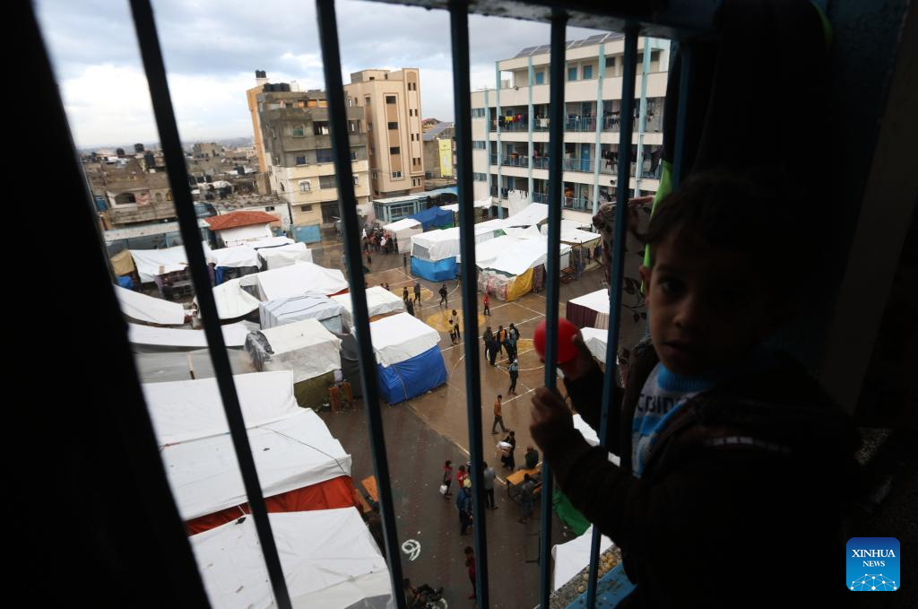 Displaced people are seen at a temporary shelter converted from a school in the southern Gaza Strip city of Rafah, on Nov. 15, 2023. According to the UN Relief and Works Agency for Palestine Refugees in the Near East (UNRWA), almost 1.5 million people have been displaced across the Gaza Strip since October 7, when Hamas carried out a surprise attack on southern Israel. (Photo by Khaled Omar/Xinhua)