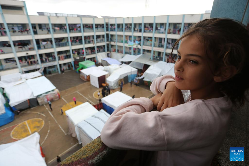 A displaced child is seen at a temporary shelter converted from a school in the southern Gaza Strip city of Rafah, on Nov. 15, 2023. According to the UN Relief and Works Agency for Palestine Refugees in the Near East (UNRWA), almost 1.5 million people have been displaced across the Gaza Strip since October 7, when Hamas carried out a surprise attack on southern Israel. (Photo by Khaled Omar/Xinhua)