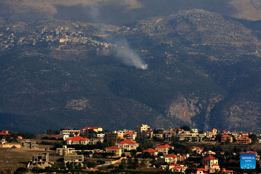 Photo taken on Nov. 16, 2023 shows Israeli artillery shelling near the town of Khiam, southern Lebanon. Two Hezbollah fighters were killed and one was injured on Thursday by Israel's heavy artillery fires on the Lebanon-Israel borders, Lebanese military sources told Xinhua. (Photo by Taher Abu Hamdan/Xinhua).