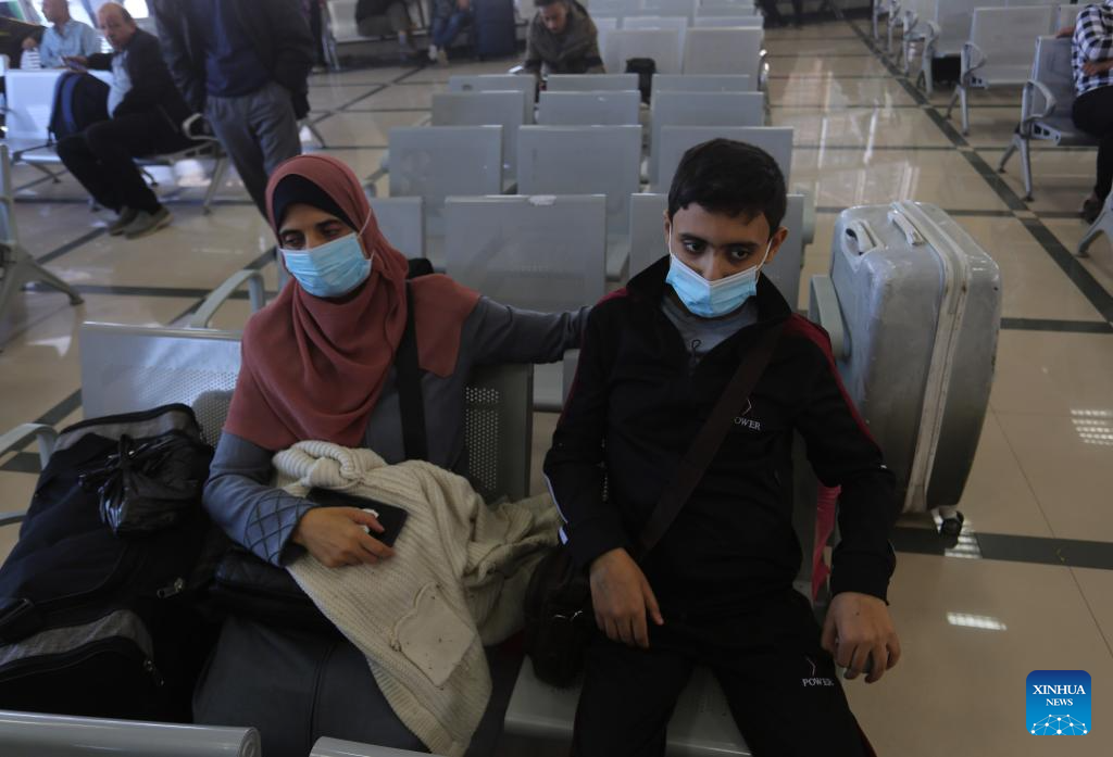 Foreign passport holders wait to leave the Gaza Strip for Egypt through the Rafah border crossing in the southern Gaza Strip, on Nov. 16, 2023. (Photo by Khaled Omar/Xinhua)