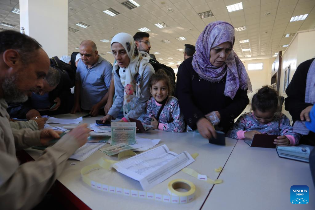 Foreign passport holders prepare to leave the Gaza Strip for Egypt through the Rafah border crossing in the southern Gaza Strip, on Nov. 16, 2023. (Photo by Khaled Omar/Xinhua)