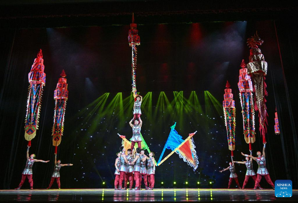 Actors perform during an acrobatic show in Beijing, capital of China, Nov. 17, 2023. A two-day acrobatic show kicked off in Beijing on Saturday. Eleven acrobatic art performing groups across the country bring 12 programs to the show. (Xinhua/Chen Yehua)