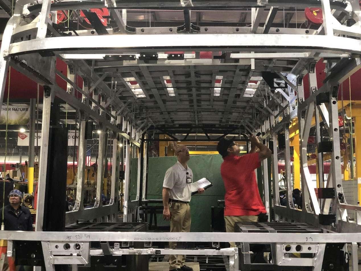 New energy buses are assembled in a factory of Chinese carmaker BYD in Lancaster, California, the United States. (Photo by Gao Mengri)
