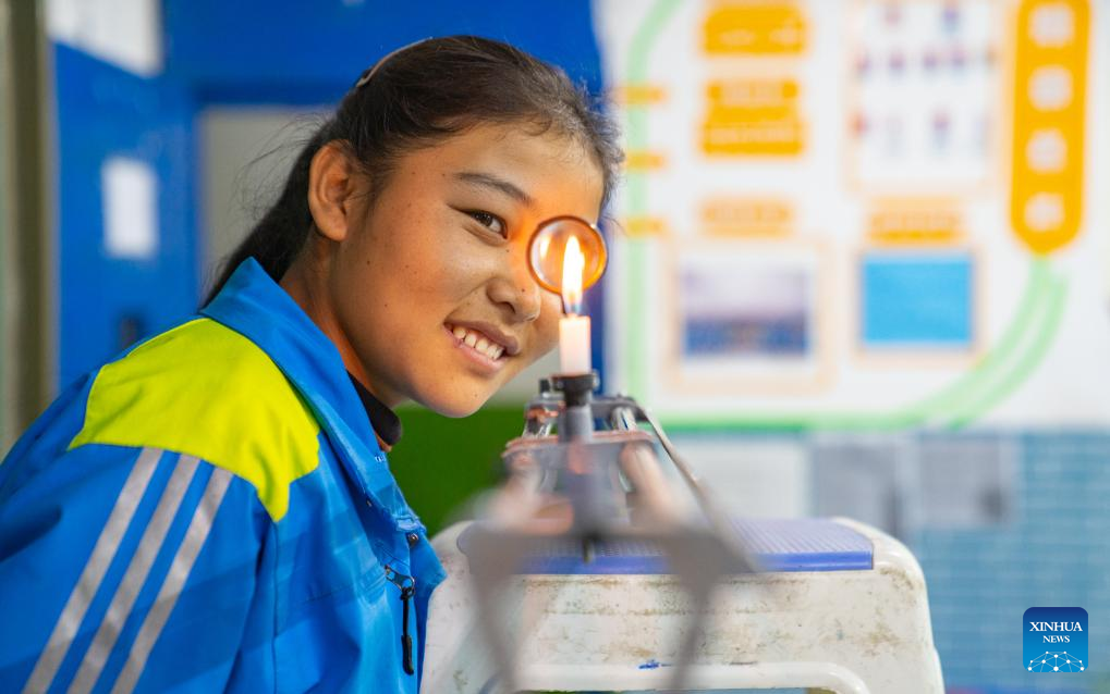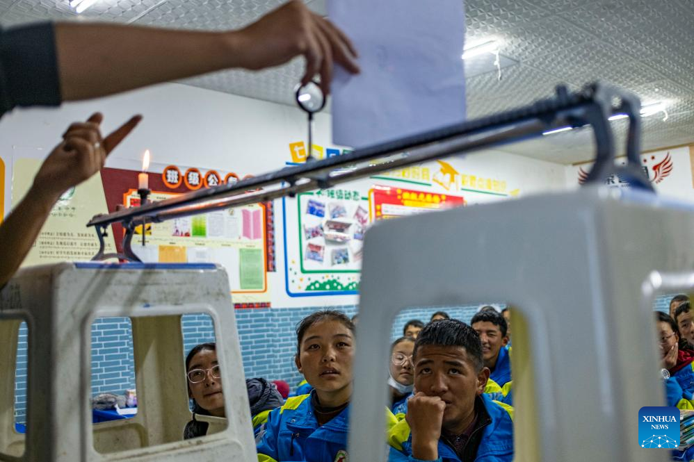 Sichod Drolma has a physics class at Damxung County Middle School in Damxung County, southwest China's Xizang Autonomous Region, Nov. 9, 2023.