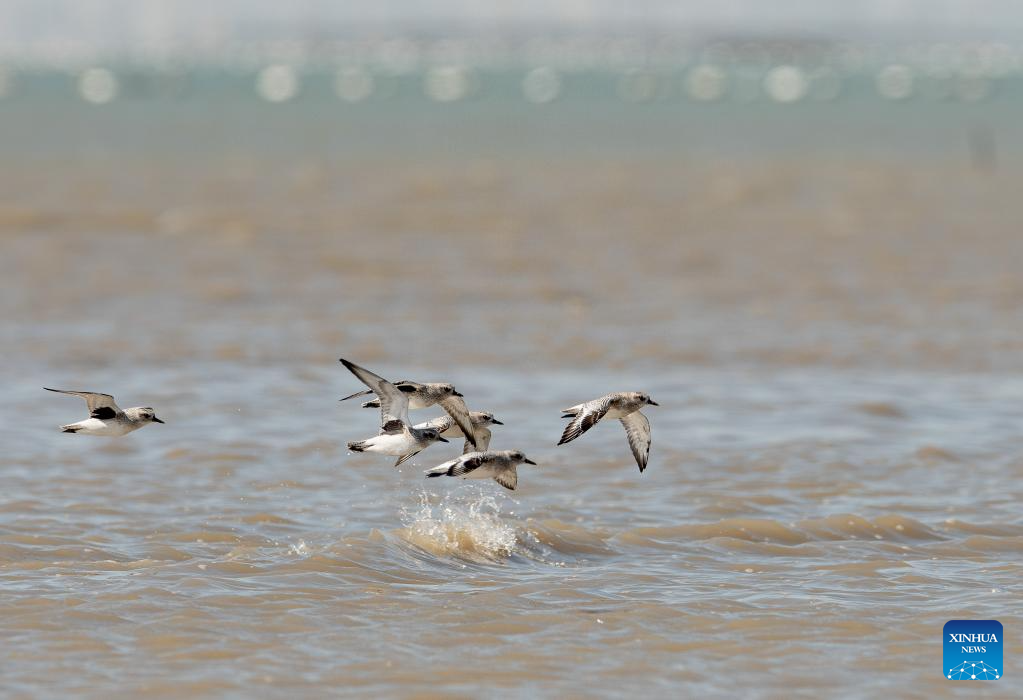 Birds fly in the Quanzhou Bay estuary wetland in southeast China's Fujian Province, Nov. 18, 2023. (Xinhua/Wei Peiquan)