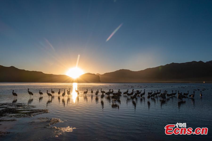 2,000 black-necked cranes arrive at Linzhou County in Lhasa for wintering