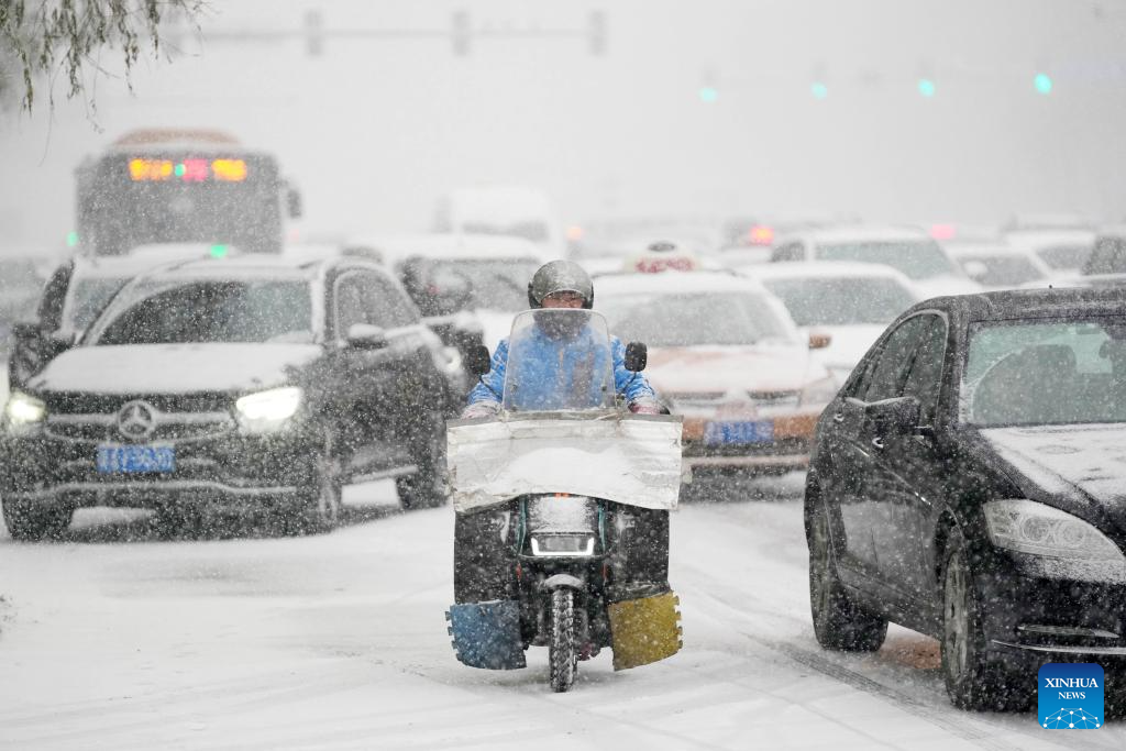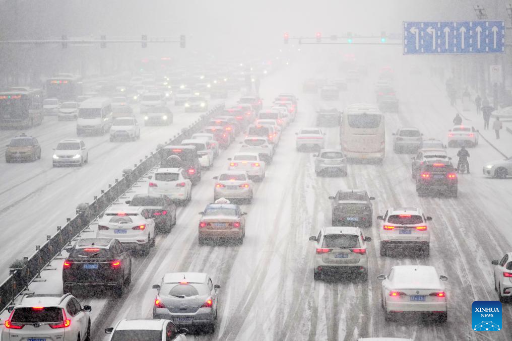 Vehicles move in the snow in Harbin, capital of northeast China's Heilongjiang Province, Nov. 22, 2023. (Xinhua/Wang Jianwei)