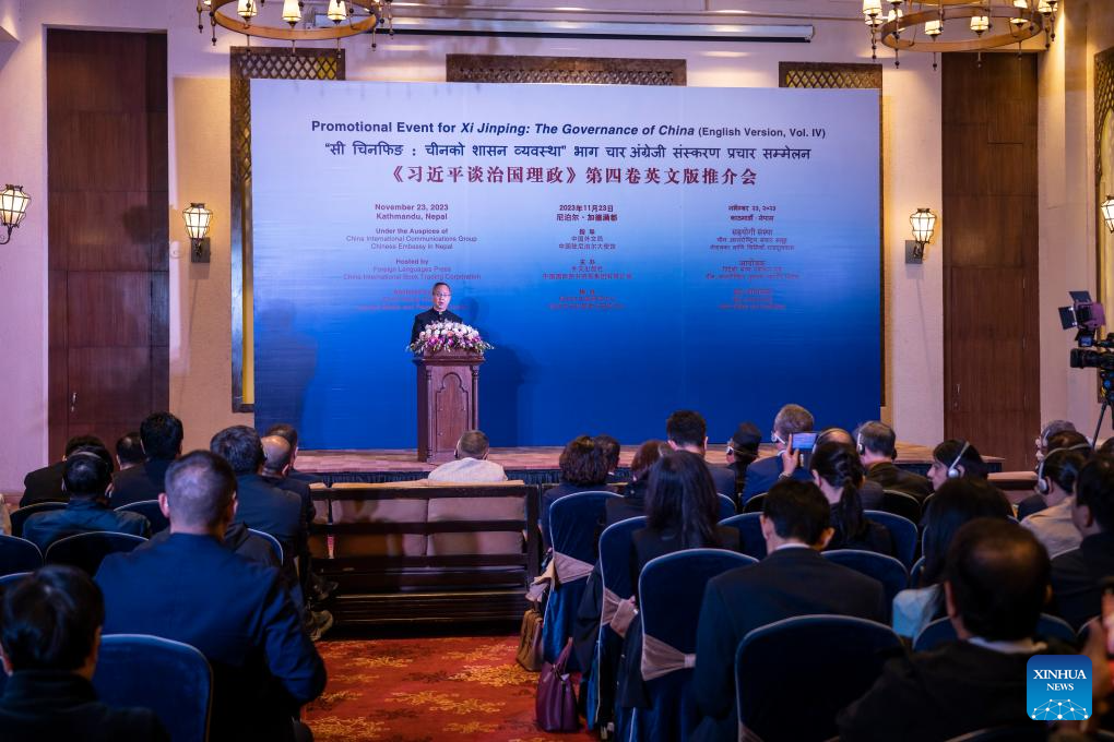 KATHMANDU, Nov. 23 (Xinhua) -- A promotional event was held in the Nepali capital on Thursday for the English version of the fourth volume of "Xi Jinping: The Governance of China."