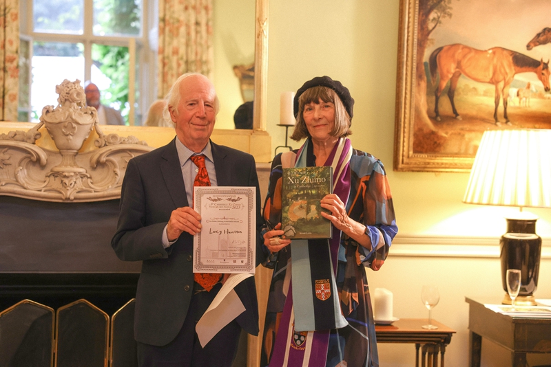 Hamilton is awarded the Xu Zhimo Lifelong Achievement Award by Professor Alan Macfarlane. (Photo/Yushan)