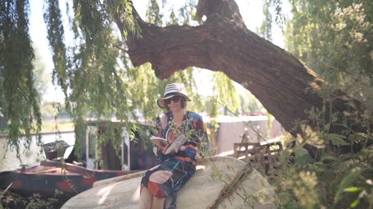 Hamilton reads by the River Cam. (Photo/Jedrek Koh)