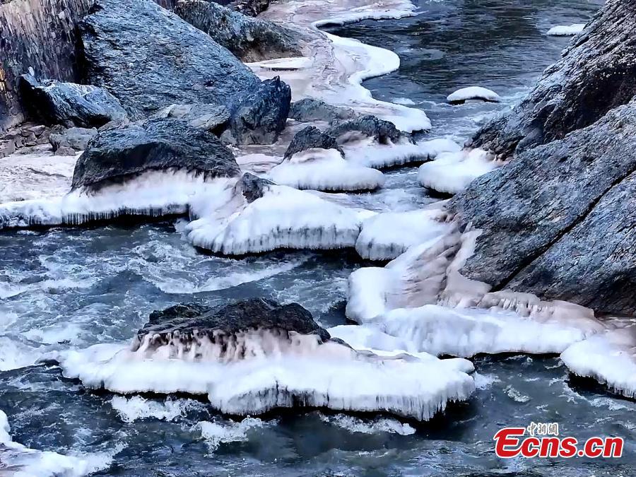 Crystal ice floats in the upper stream of Heihe River in Qilian County, Haibei Tibetan autonomous prefecture, northwest China's Qinghai Province. (Photo: China News Service/Bao Lei)
