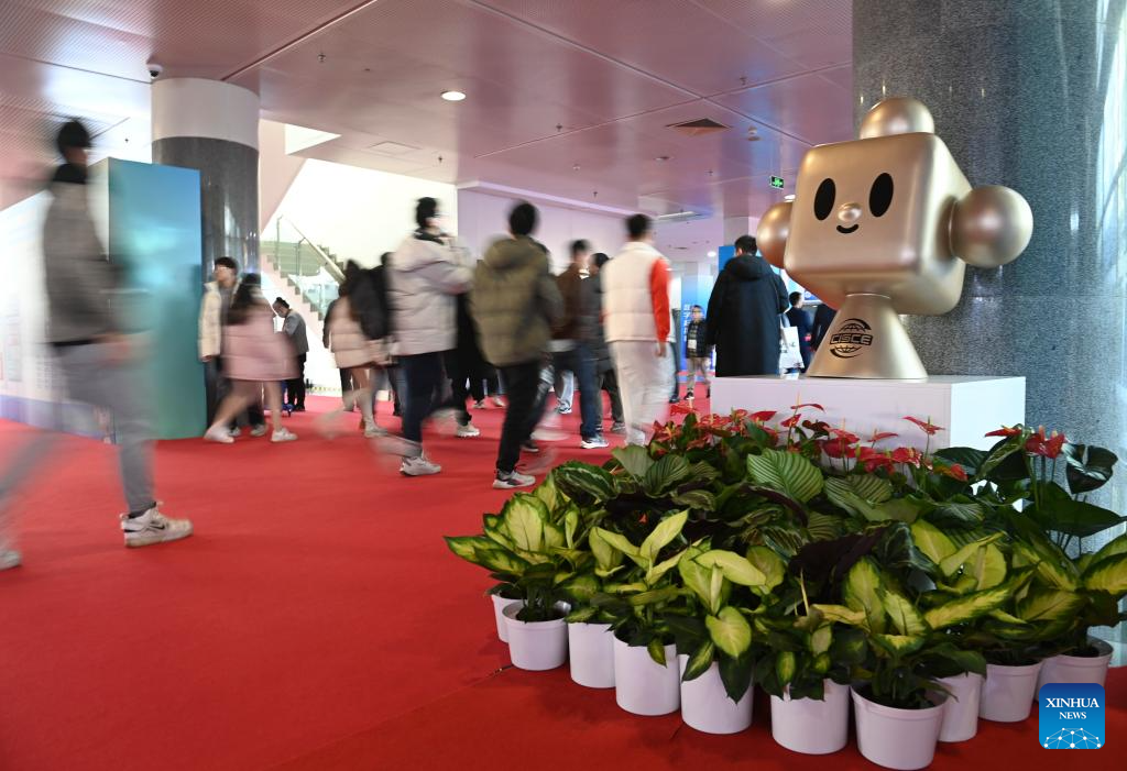 This photo taken on Nov. 29, 2023 shows mascot products of the China International Supply Chain Expo (CISCE) held in Beijing, capital of China. The CISCE opened in Beijing, the first of its kind in the world devoted to promoting industrial and supply chain collaboration. (Xinhua/Li He)