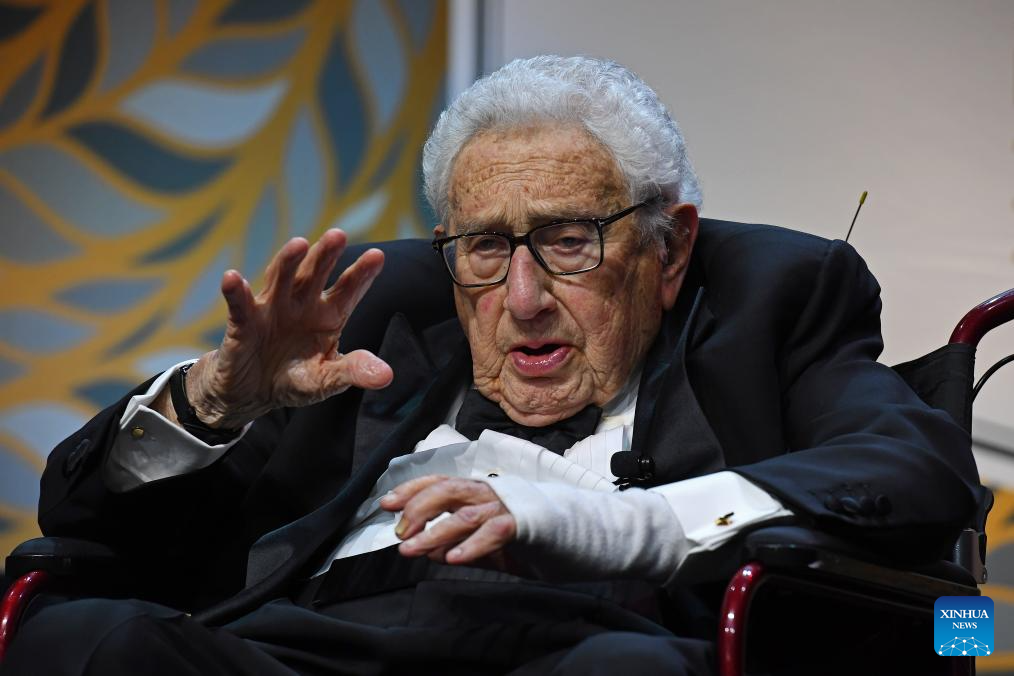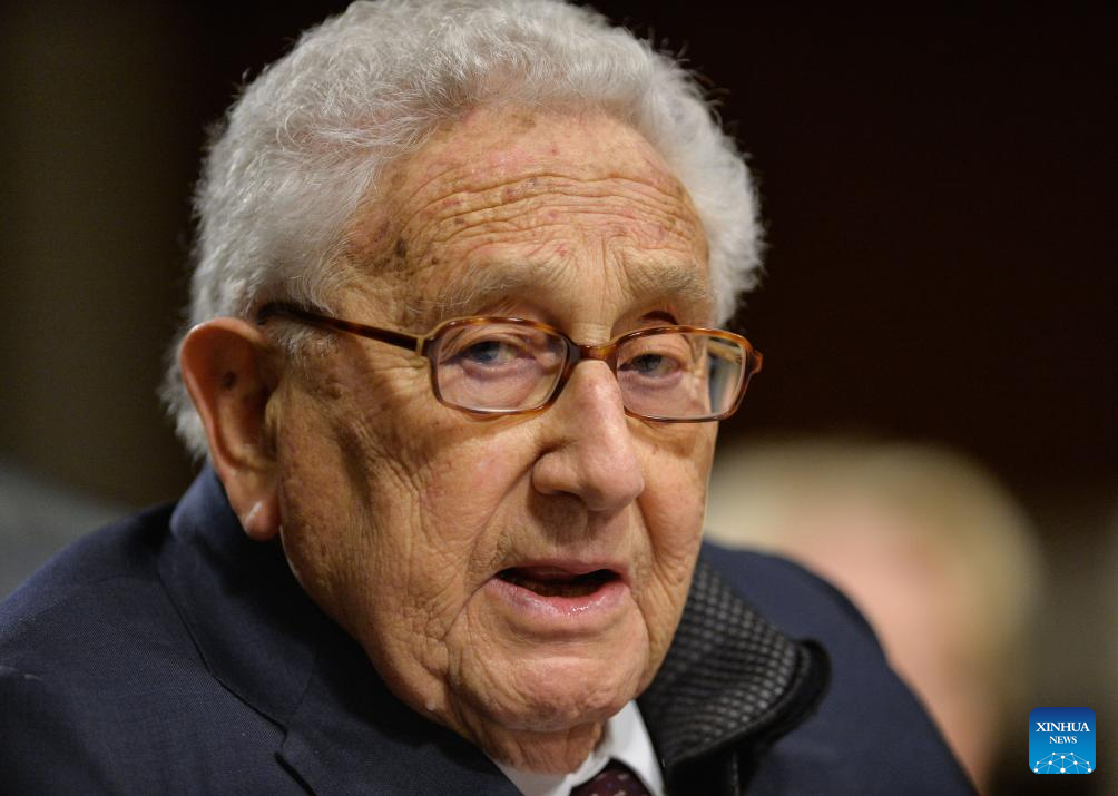 NEW YORK, Nov. 29 (Xinhua) -- Former U.S. Secretary of State Henry Kissinger died on Wednesday at home in Connecticut at the age of 100, Kissinger Associates, Inc said in a statement.