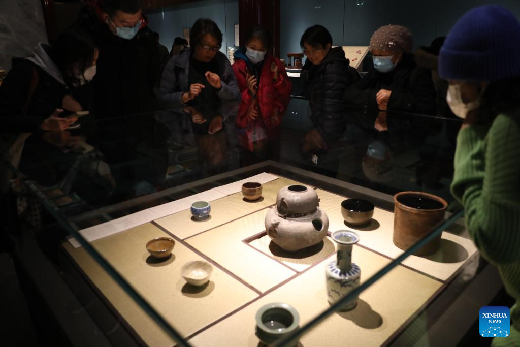 Tourists visit an exhibition on Chinese tea culture at Palace Museum, also known as the Forbidden City, in Beijing, capital of China, Nov. 29, 2023. (Xinhua/Jin Liwang)