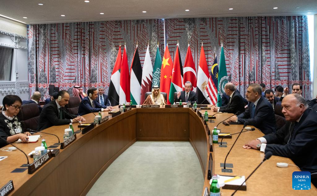 Chinese Foreign Minister Wang Yi, also a member of the Political Bureau of the Communist Party of China Central Committee, meets with Arab and Islamic countries' foreign ministers at the UN headquarters in New York, Nov. 29, 2023. (Xinhua/Liu Jie)