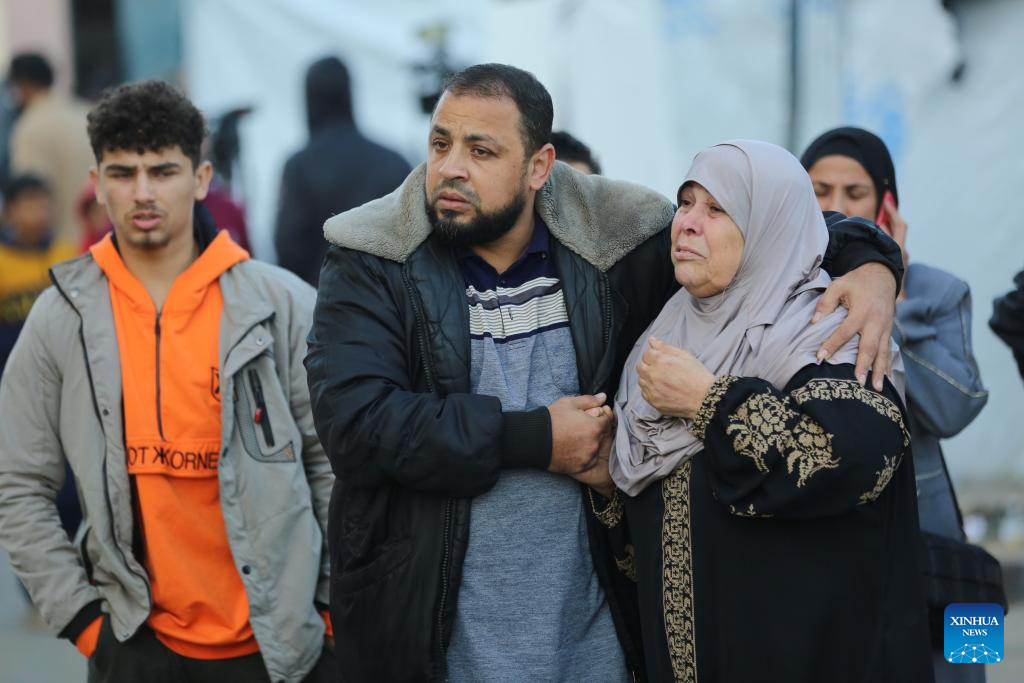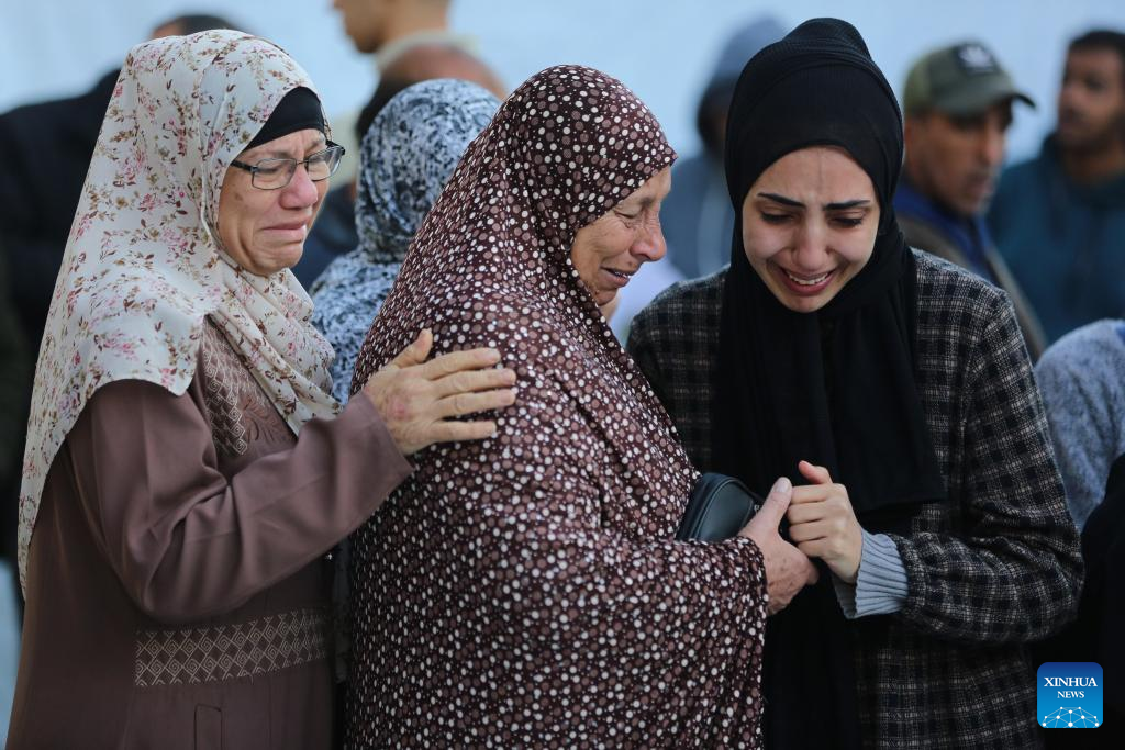People mourn for victims killed in airstrikes in central Gaza Strip city of Deir el-Balah, Dec. 3, 2023. (Xinhua)