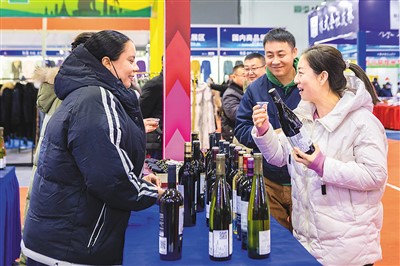 Visitors select French wines at an import and export commodities fair recently held in north China's Inner Mongolia Autonomous Region. (Photo/Ding Genhou)