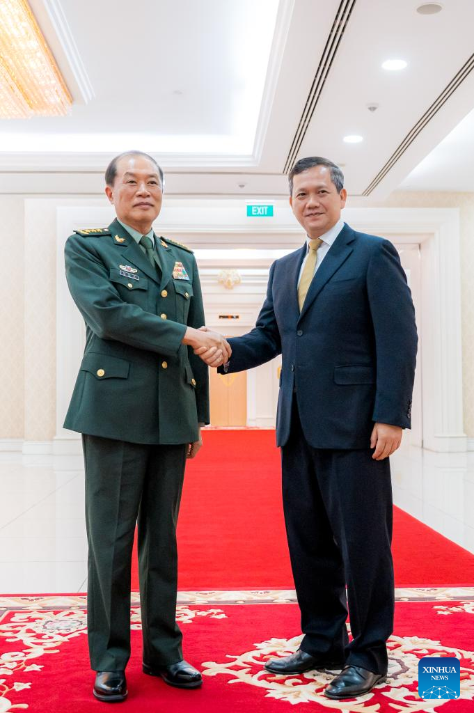 PHNOM PENH, Dec. 4 (Xinhua) -- Cambodian Prime Minister Hun Manet met with He Weidong, visiting vice chairman of China's Central Military Commission, here on Monday.