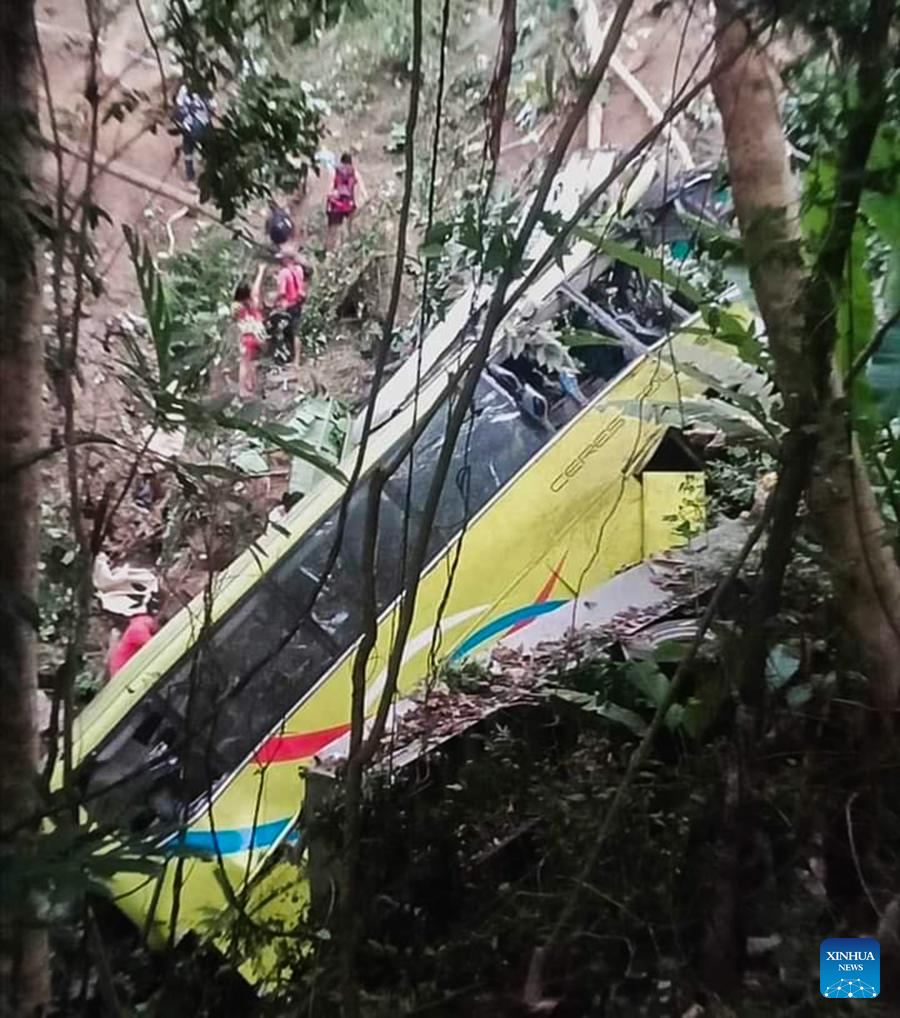 MANILA, Dec. 5 (Xinhua) -- At least 25 persons were killed on Tuesday when a passenger bus plunged off a cliff in Antique province in central Philippines, local media reported.