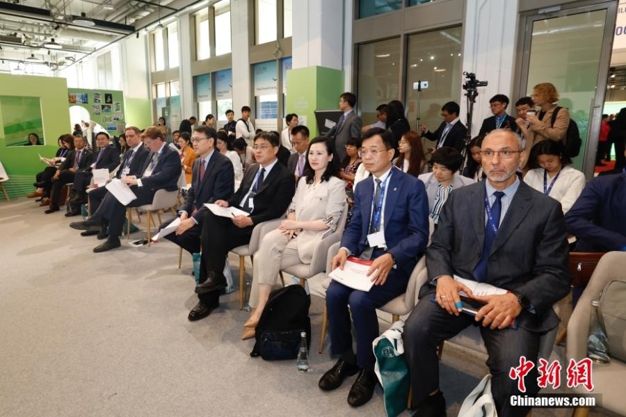 Guests attend a side event on green finance and climate change during the 28th Conference of the Parties to the United Nations Framework Convention on Climate Change (COP28) held in Dubai, the United Arab Emirates, Dec. 5, 2023. (Photo: China News Service/Han Haidan)