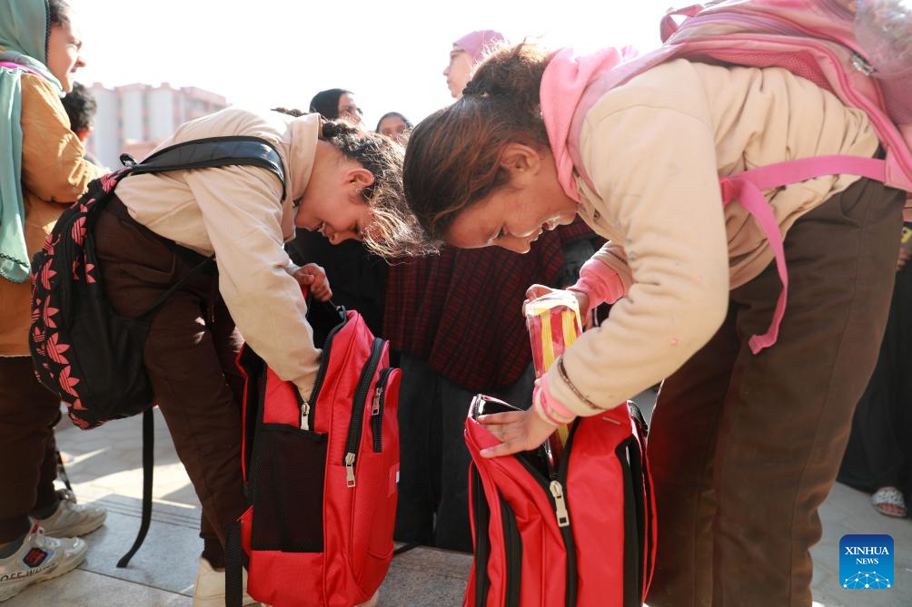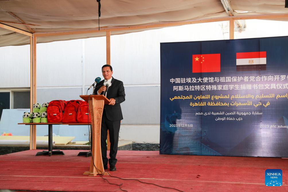 CAIRO, Dec. 6 (Xinhua) -- The Chinese Embassy in Egypt, in cooperation with the pro-government Egyptian political party of Homat Al Watan (the Protectors of the Nation), has donated school materials to students in need in Cairo.
