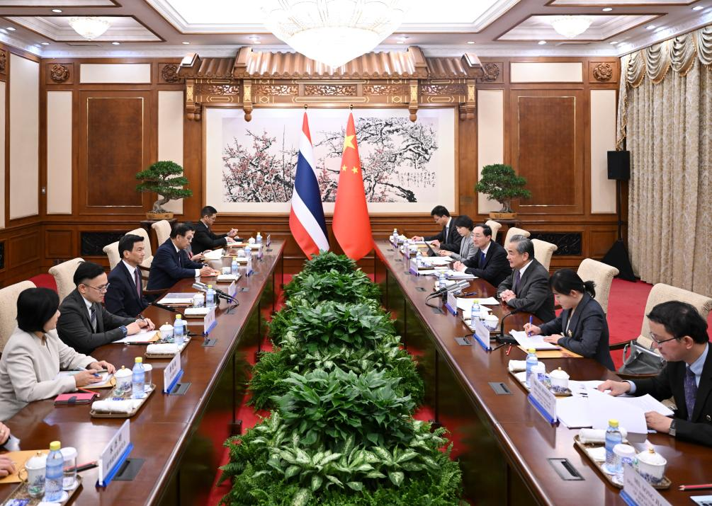 The two sides should maintain a stable and unimpeded system of production and supply chains, jointly crack down on transnational crimes such as online gambling, telecom fraud and human trafficking, and push for new development of China-Thailand relations, Wang said.