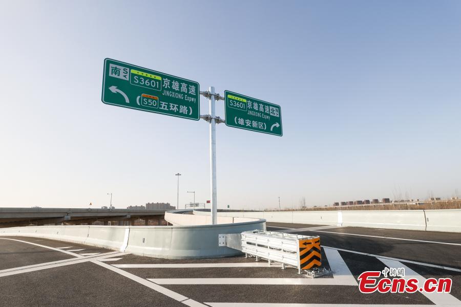 Traffic signs are installed at an intersection on the Beijing section of the Beijing-Xiong'an Expressway in Beijing, Dec. 6, 2023. (Photo: China News Service/Jia Tianyong)