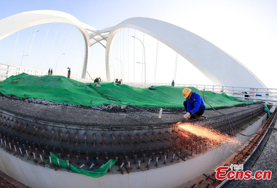 A construction worker works on the Jingxiong bridge, a segment of the Beijing-Xiong'an Expressway in Beijing, Dec. 6, 2023. (Photo: China News Service/Jia Tianyong)