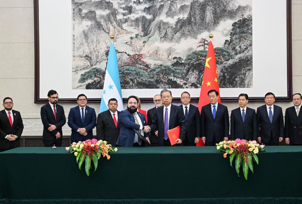 Zhao, chairman of the National People's Congress (NPC) Standing Committee, said that the establishment of diplomatic ties between China and Honduras earlier this year was a major political decision of historic significance made by the two heads of state, and that it has opened a new chapter in the development of bilateral relations between the two countries.