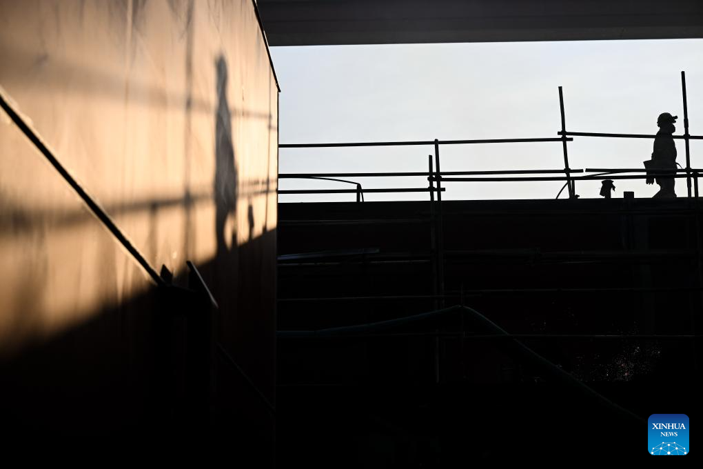 A worker is seen at a shipyard of Jiangsu Yangzi Xinfu Shipbuilding Co., Ltd. in Taixing, east China's Jiangsu Province, Dec. 5, 2023.