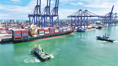 Yangpu Port in south China's Hainan Province, sitting at the critical junction of the golden waterway of the Pacific Ocean and the Indian Ocean, is one of the ports along the 21st Century Maritime Silk Road. In recent years, Yangpu Port has made every effort to turn into a green and low-carbon international shipping hub. In May 2023, the Yangpu International Container Terminal was rated as the first "four-star" green port in the Hainan Free Trade Port.