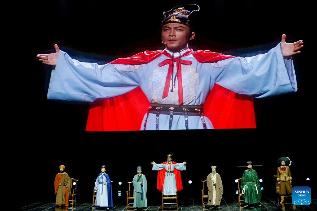 Actors perform during the opening ceremony of the fifth Maritime Silk Road International Arts Festival in Quanzhou, southeast China's Fujian Province, Dec. 8, 2023. (Xinhua/Wei Peiquan)