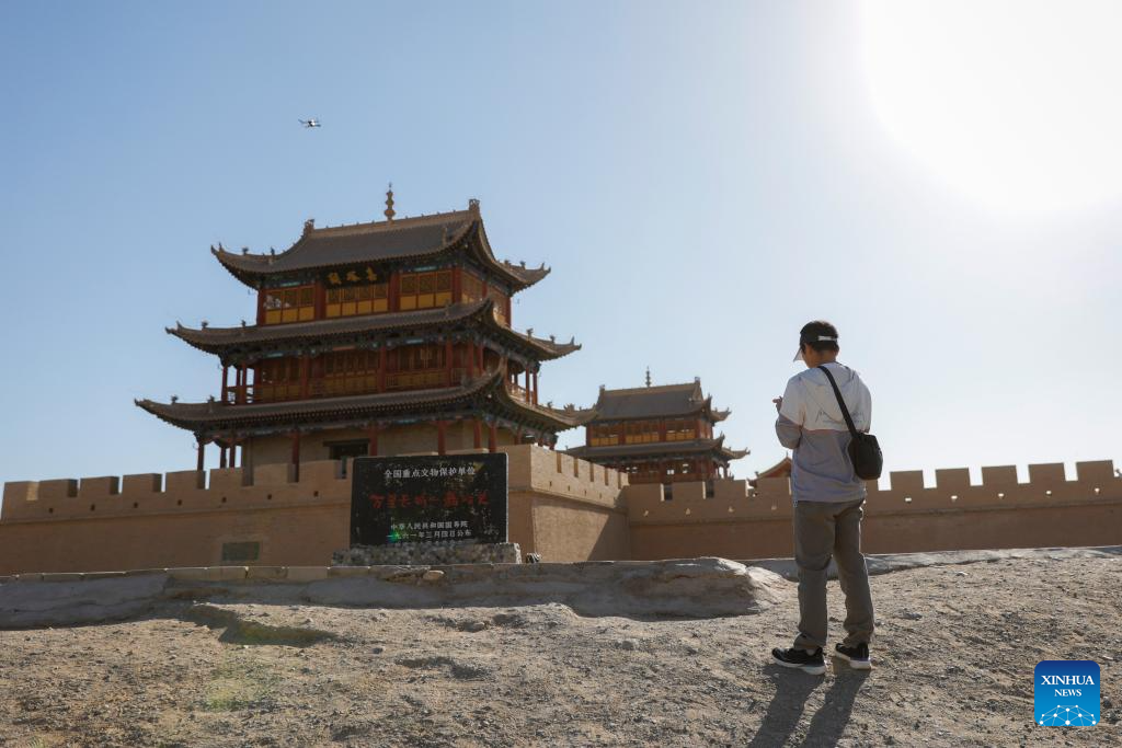 Zhang Xiang, chief of the cultural heritage monitoring center of Jiayuguan Silk Road (the Great Wall) cultural research institute, uses a drone to inspect the Jiayu Pass scenic area in Jiayuguan City, northwest China's Gansu Province, July 14, 2023. In recent years, cultural heritage protection institutions have increased the investment in the technological protection of the Great Wall. Institutions utilize technological equipment to collect data, analyze metrics and detect any possible damage. These methods guarantee the implementation of effective preservation and restoration measures in time and the Great Wall well-preserved. (Xinhua/Fang Xin)