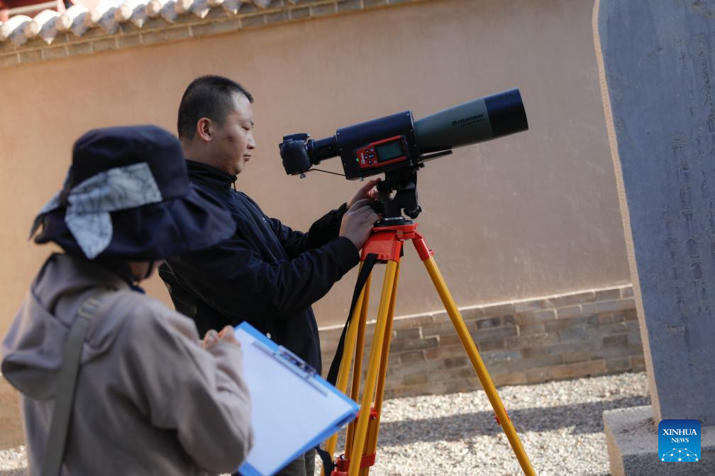 Gao Shang, an engineer from the cultural heritage monitoring center of Jiayuguan Silk Road (the Great Wall) cultural research institute, monitors the changes of cracks on Jiayuguan section of the Great Wall in Jiayuguan City, northwest China's Gansu Province, July 14, 2023. In recent years, cultural heritage protection institutions have increased the investment in the technological protection of the Great Wall. Institutions utilize technological equipment to collect data, analyze metrics and detect any possible damage. These methods guarantee the implementation of effective preservation and restoration measures in time and the Great Wall well-preserved. (Xinhua/Chen Zhonghao)