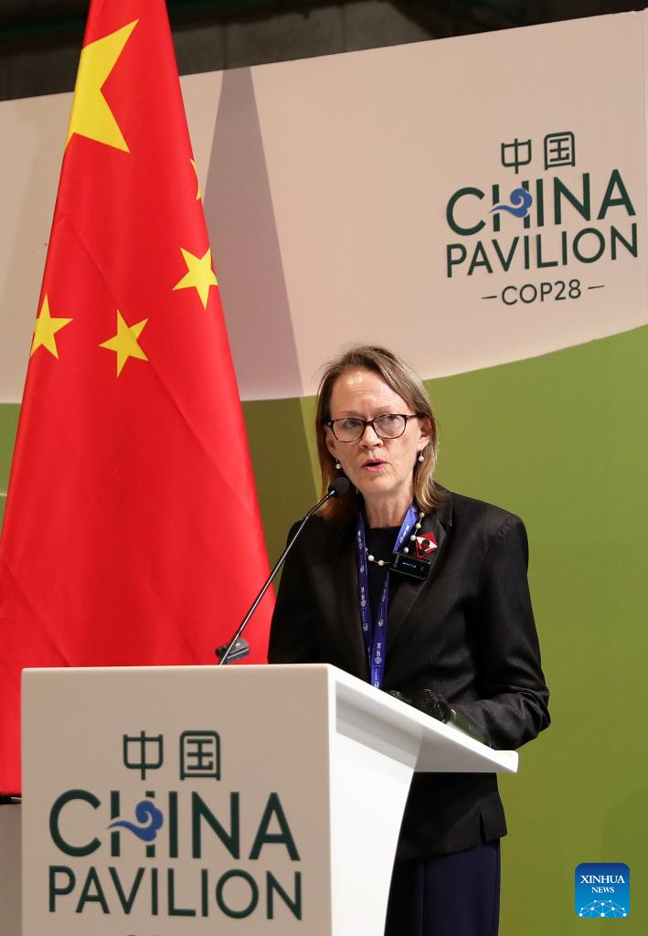 Mary Warlick, deputy executive director of the International Energy Agency, speaks at a side event themed "Jointly Shaping a Resolute Future for Global Energy Transformation" of COP28 ongoing in Dubai, the United Arab Emirates, Dec. 9, 2023. (Xinhua/Wang Dongzhen)