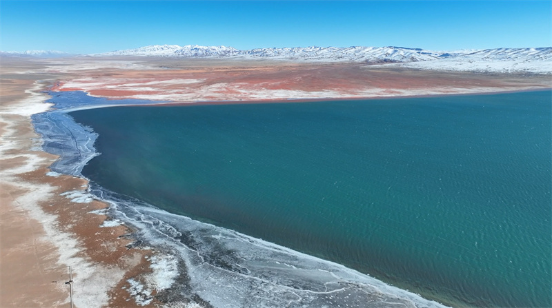 Alake Lake, nestled in the Qinghai-Tibet Plateau in northwest China’s Qinghai Province, has turned into a stunning winter wonderland, with emerald blue waters glistening against distant mountains blanketed in pristine snow.