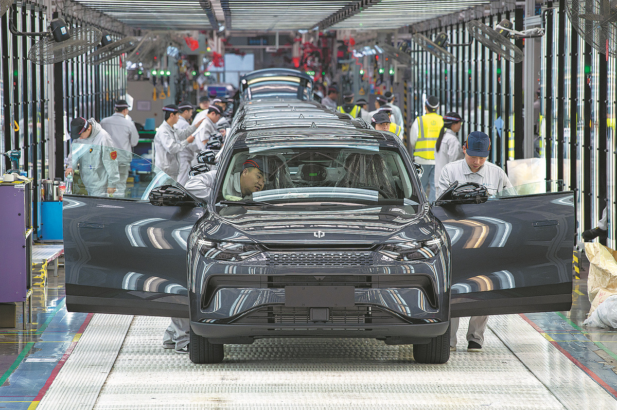 New energy vehicles roll off the assembly line of a carmaker in Jinhua, Zhejiang province. [HU XIAOFEI/FOR CHINA DAILY]