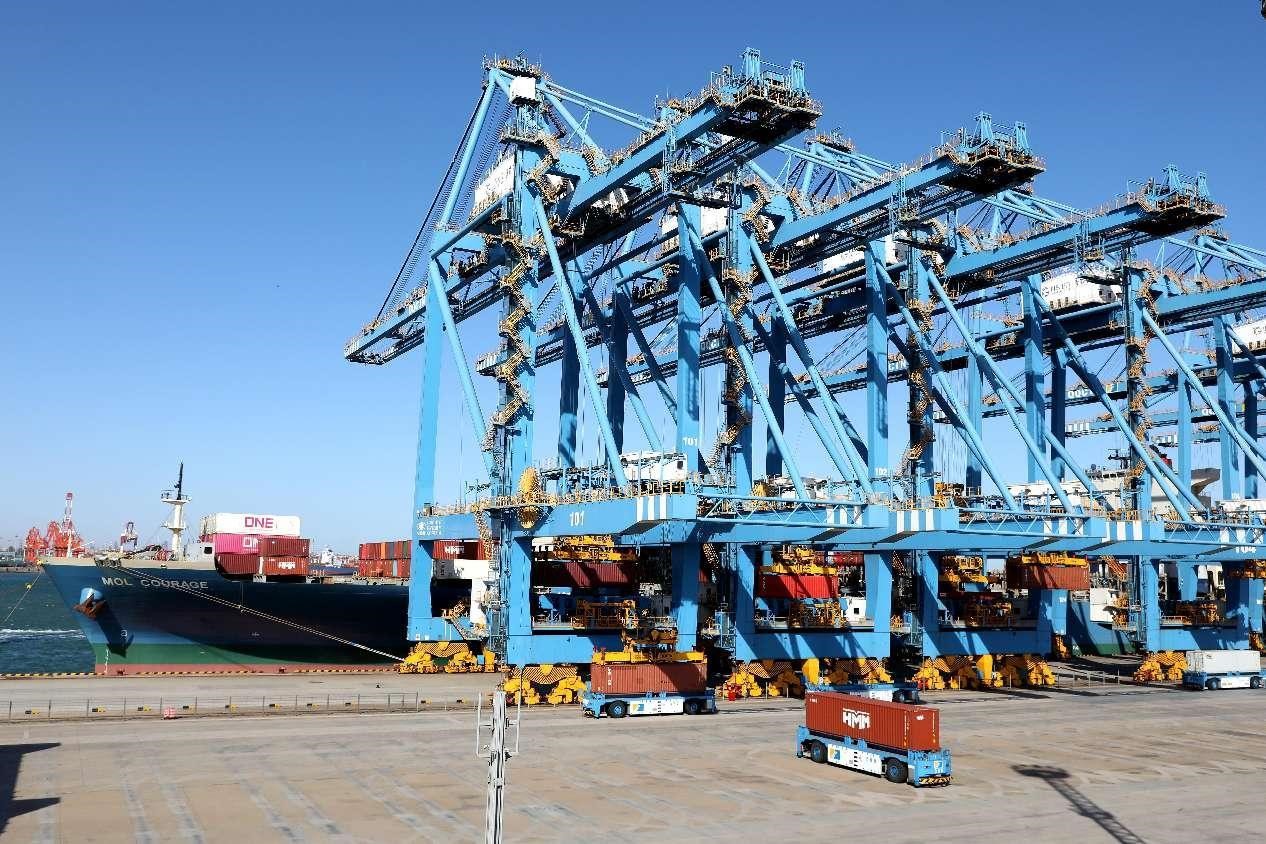 A cargo vessel is being loaded at the automated terminal of Qingdao Port in east China's Shandong province. (People's Daily Online/Wang Peike)