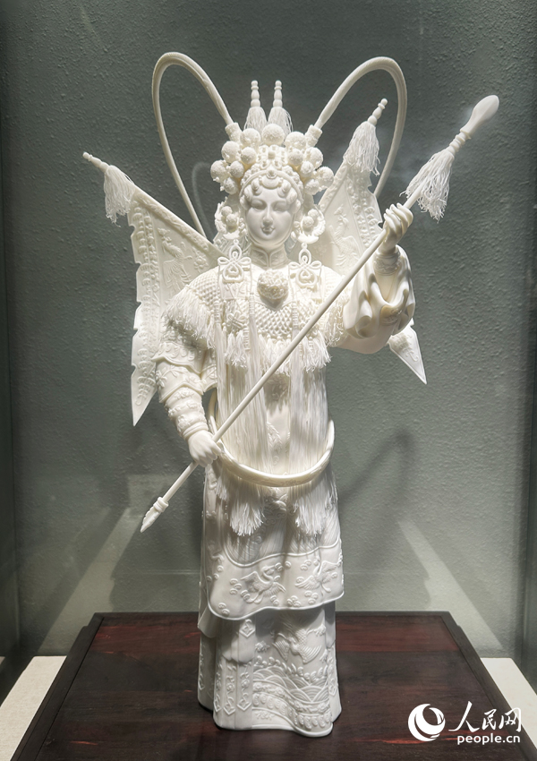 Photo shows a porcelain piece by Lin Lingyue, an arts and crafts master in southeast China's Fujian Province. (People's Daily Online/Liu Qing)