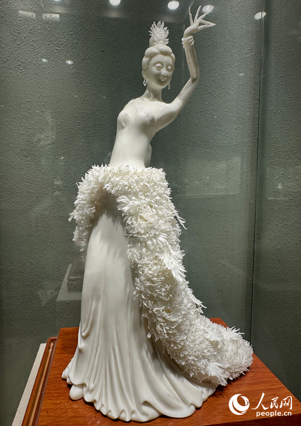 Photo shows a porcelain piece on display inside a ceramics cultural and creative park in southeast China's Fujian Province. (People's Daily Online/Liu Qing)