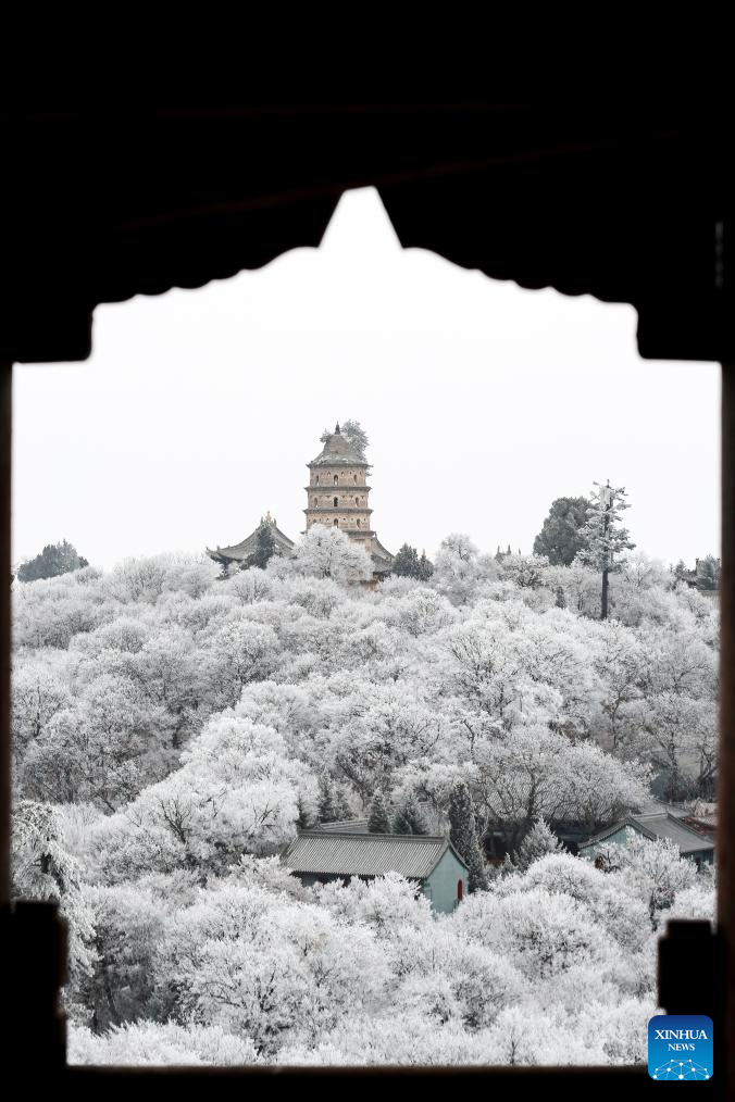 This photo taken on Dec. 14, 2023 shows the winter scenery at Kongtong Mountain in Pingliang, northwest China's Gansu Province. (Photo by Wu Xihui/Xinhua)